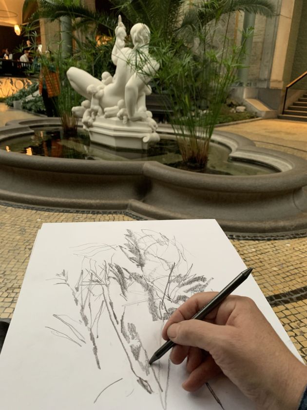 Det handler og at give sig tid og se og opleve malerierne, skulpturer, planterne og rummene gennem tegningen og at nyde processen og stemningen i Glyptoteket. Via nærværet og oplevelserne med kunsten kommer vi tættere på vores egne unikke og besjælede streger. Den stille streg og tegningen er noget af det mest meditative jeg kender. Langsomt bygges der op og gives plads til det enkle, lys, skygge og nye ideer….
