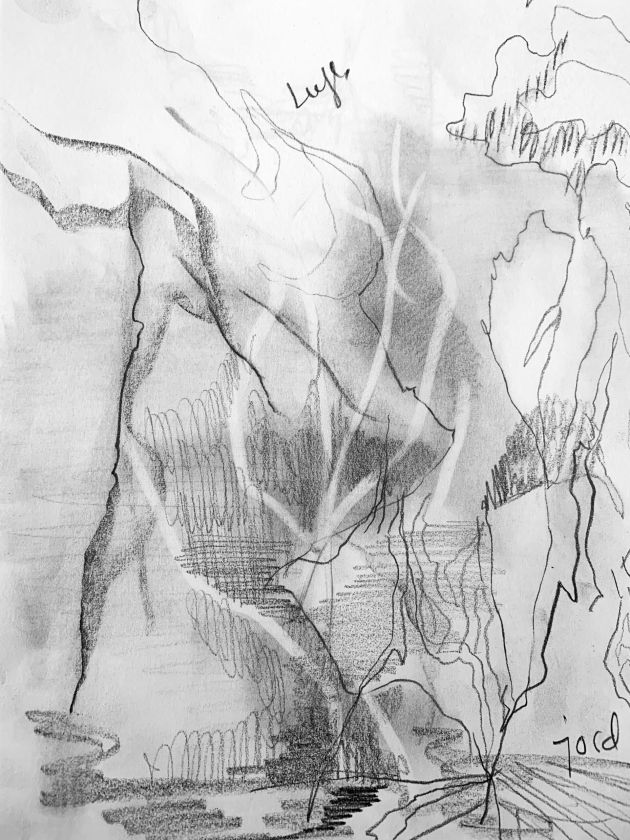 Grundlæggende starter vi ud med opvarmningsøvelser, vi skal lige i flow, gå ind i den fordybende boble, senere på aftenen vil der være tid til at tegne individuelt.