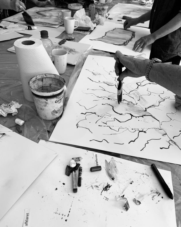 Grundlæggende starter vi ud med opvarmningsøvelser, vi skal lige i flow, gå ind i den fordybende boble, senere på aftenen vil der være tid til at tegne individuelt.