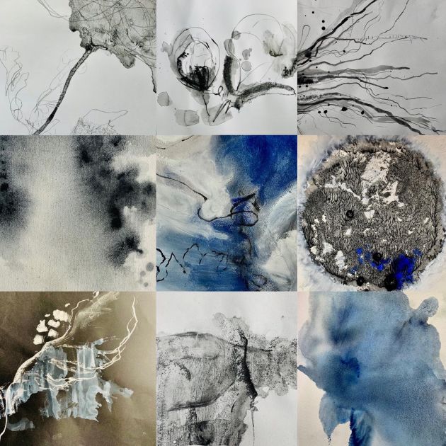 Som altid arbejder vi med det meditative og frigørende ser hvad der dukker op i streger og former i vores inspireret af naturen omkring os og fotos fra den større geologi. Søgen efter det drømmende, indre og visionære. Det er en lyttende og intuitiv proces hvor vi søger dybere for at komme tættere på man drømmer om at udtrykke…. Måske sker der noget helt uventet af farver, former og indhold denne weekend….