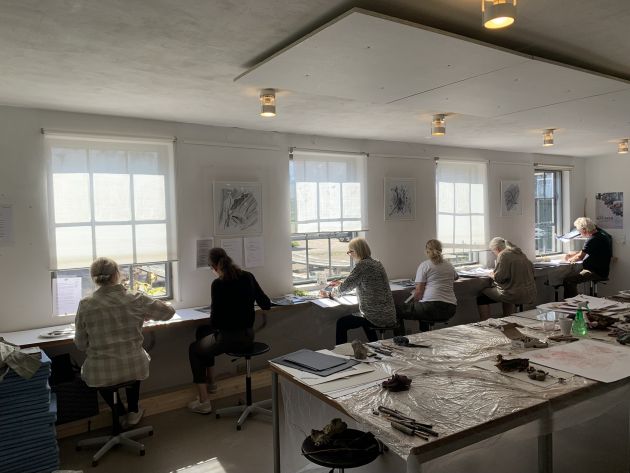 Det er åbent for alle der har lyst til at tegne og udvikle sin streg… Nogle har tegnet meget andre lidt det betyder ikke noget, det er nysgerrigheden og lysten til at tegne der er det vigtigste. Det er en mere malerisk guidet proces ind i tegningen, lys og skygge. Det handler meget mere om intensitet, nærvær overgivelse til at arbejde på nye eksperimenterende måder med tegningen, væk fra det vanetænkende. Du bestemmer selv om du vil dyrke en meget abstrakt og fri tilgang eller mere figurativ vej.